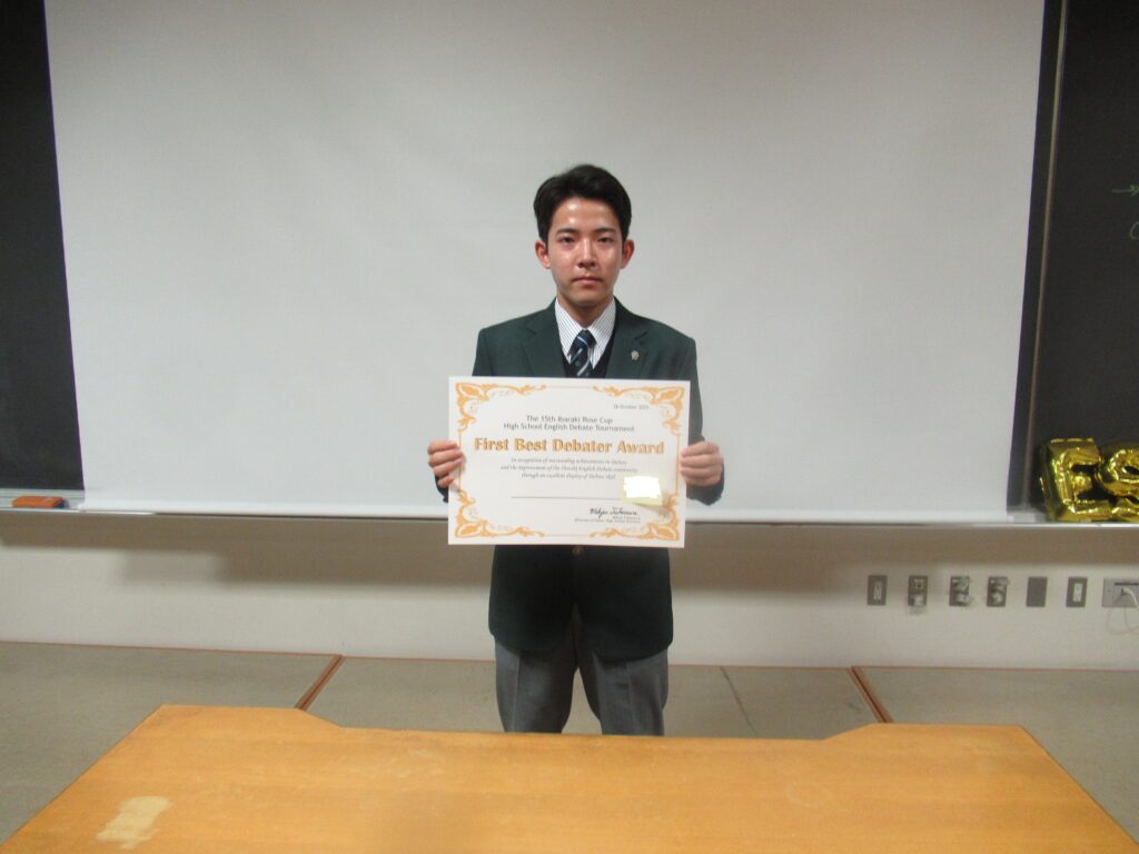 【英語科】令和7年第15回茨城県ローズ杯高校生英語ディベート大会 最優秀ディベータ―賞受賞!