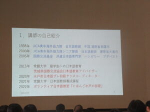 多文化共生の導入講義として、地域日本語教育がご専門の常磐大学 人間科学部コミュニケーション学科教授の飯野玲子さんから講義とワークショップを通じて、多文化共生の考え方や、外国人の方に通じる『やさしい日本語』の使い方や、これからの地域社会での様々な必要性を学びました。