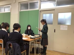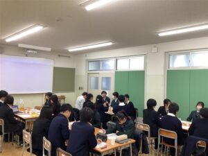 初めに、両校の会長がそれぞれの生徒会について紹介を行い、その後は役職に分かれて交流しました。江戸取では、当日参加できなかった役員からも事前に話し合ってほしいテーマを募集し、交流会の中ではそれらについて議論しました。最初は互いに緊張した雰囲気もありましたが、雑談を交えながら、真剣に集中して意見を交わすことができました。