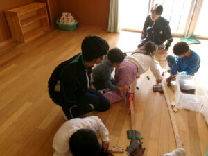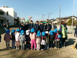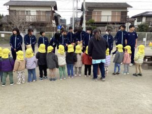 訪問の際には「お兄さんお姉さんが来た!」と迎えてくれ、帰る時間には姿が見えなくなるまで手を振って見送ってくれる園児の皆さんの姿があり、生徒たちにとっても心に残る交流となりました。