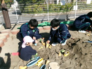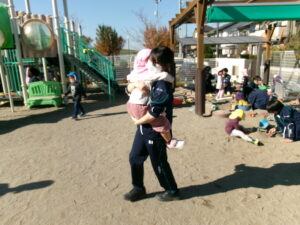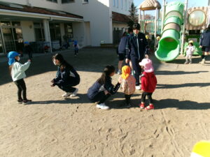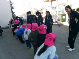 実習では、園庭での外遊びを中心に園児の皆さんと交流しました。寒い日もありましたが、元気いっぱいに遊ぶ園児の皆さんと一緒に体を動かすうちに、生徒たちも自然と笑顔になり、寒さを忘れて活動する姿が見られました。