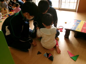 また、生徒たちは園児の皆さんのことを思い浮かべながら折り紙の作品を準備し、実習の中で手渡しました。受け取った園児の皆さんの嬉しそうな表情に、生徒たちも喜びを感じている様子でした。