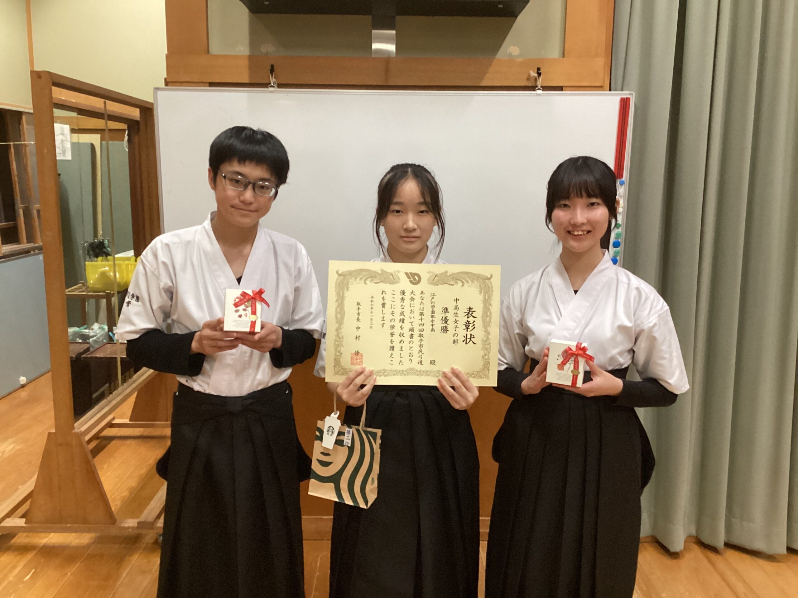 11月3日(月祝)にTAC取手グリーンスポーツセンター弓道場で行われた、第14回取手市民弓道大会において、本校生3名が入賞を果たしました。詳細は以下の通りです。