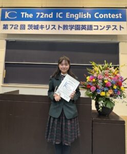 茨城キリスト教大学で行われた第72回茨城キリスト教学園英語コンテストに、本校から中学3年生のSさんが参加し、「中学ストーリーの部」で第3位をそれぞれ受賞しました。 この大会は大学主催の伝統ある英語コンテストで、県内から多くの中学生・高校生が参加しています。