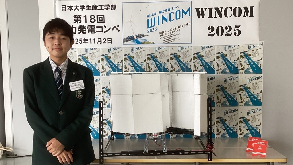11月2日(日)に日本大学生産工学部にて第18回風力発電コンペ WINCOM 2025が開催されました。 風力発電コンペとは、高校生などが風車を1から作成し、その性能等で競う大会です。 本校科学部からは1組がエネルギー利...
